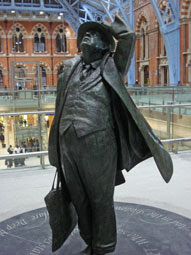 St Pancras is Betjeman's. His statue stands in pride of place above the undercroft, a few steps away from the old booking office. A pointy bronze overcoat flaps behind him in the non-existent breeze, as he tips his head back to stare in awe and wonder at the magnificent ceiling. A swirl of poetry spins around his feet, with additional lines and verses etched into the paving slabs nearby. He looks both delighted and startled to be here, as do we who follow in his footsteps. We wouldn't be standing here today without him. There'd probably be a ghastly identikit office block on site by now had he not stepped in during the 1960s and raised his voice for posterity. Thank you Sir! 21st century London will be forever in your debt.