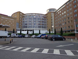 Tours of TVC vary according to what's going on where, so sometimes you get to see one studio and at other times another. But all tours begin on the BBC Star Terrace, which is an elevated area near the main entrance with dozens of circular plaques underfoot. Here are commemorated Dick Emery, and Harry H Corbett, and Paul Eddington, and one suspects Sir Bruce Forsyth is out there somewhere. From here the exterior of the famous 'doughnut' is visible, that's the central ring containing the earliest offices, and the bobbly walls of Studio 1, one of the largest recording spaces in the country. There's also a Tardis up the back, or at least a few bits of wood painted blue and banged together to look like a Tardis, which (to break the illusion) is all a Tardis is. It's here so that visitors on the tour have something to take their photo next to, although I waited specially until there was nobody in the way before I snapped.