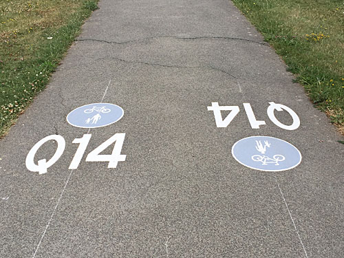 And all of this joins up to the existing Thames Path round the back of the Thames Barrier. Not along the actual waterfront, but pushed further back inland, and linking upstream of the barrier via a freshly-scrubbed curving track. You can still see the chalk lines where the stencil application team aligned their lettering. From here it's 180 miles to the source of the Thames, if the fancy takes you. But if all you want is a walk or ride along the industrial estuarine river, the journey just got a fraction shorter, and a whole lot more interesting.