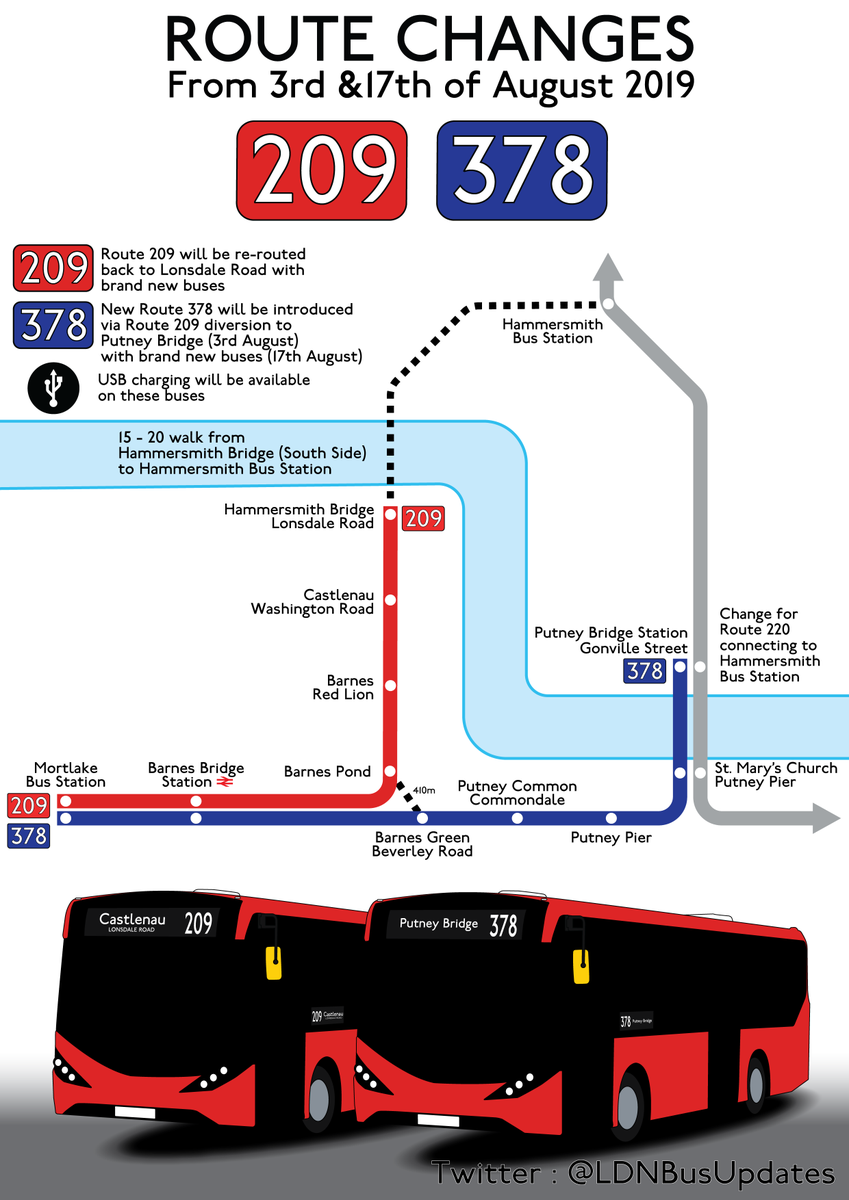 | The 209 is London's new 2nd shortest bus route, perhaps until Hammersmith Bridge is finally fixed. | | The 378 is London's newest bus route, but more a community kindness than an essential connection. |