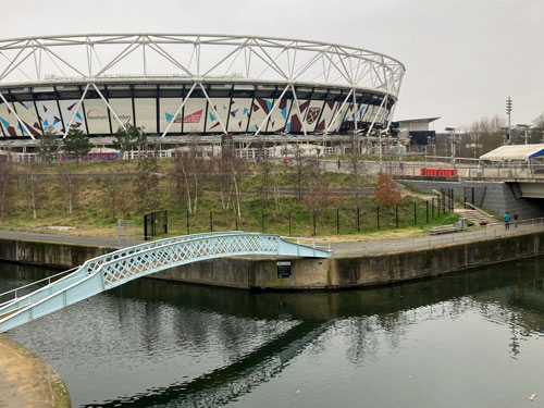 ••••• Last February a planning application was submitted to add 50m of fence to the edge of Stadium Island so that West Ham could shut out members of the public on matchdays. That fence has now appeared, along with one lockable gate on the towpath and another at the foot of the steps. This simple act allows the footpath alongside the Old River Lea to remain open at all times, even when claret and blue hordes are marauding up top. It's also ended the need for monthly closure dates to be pinned to surrounding bridges, reducing clutter and faff, so a bit of a win all round.