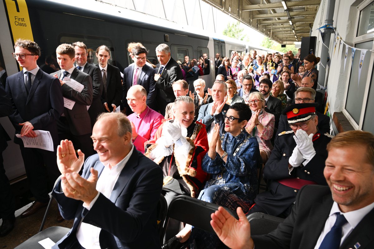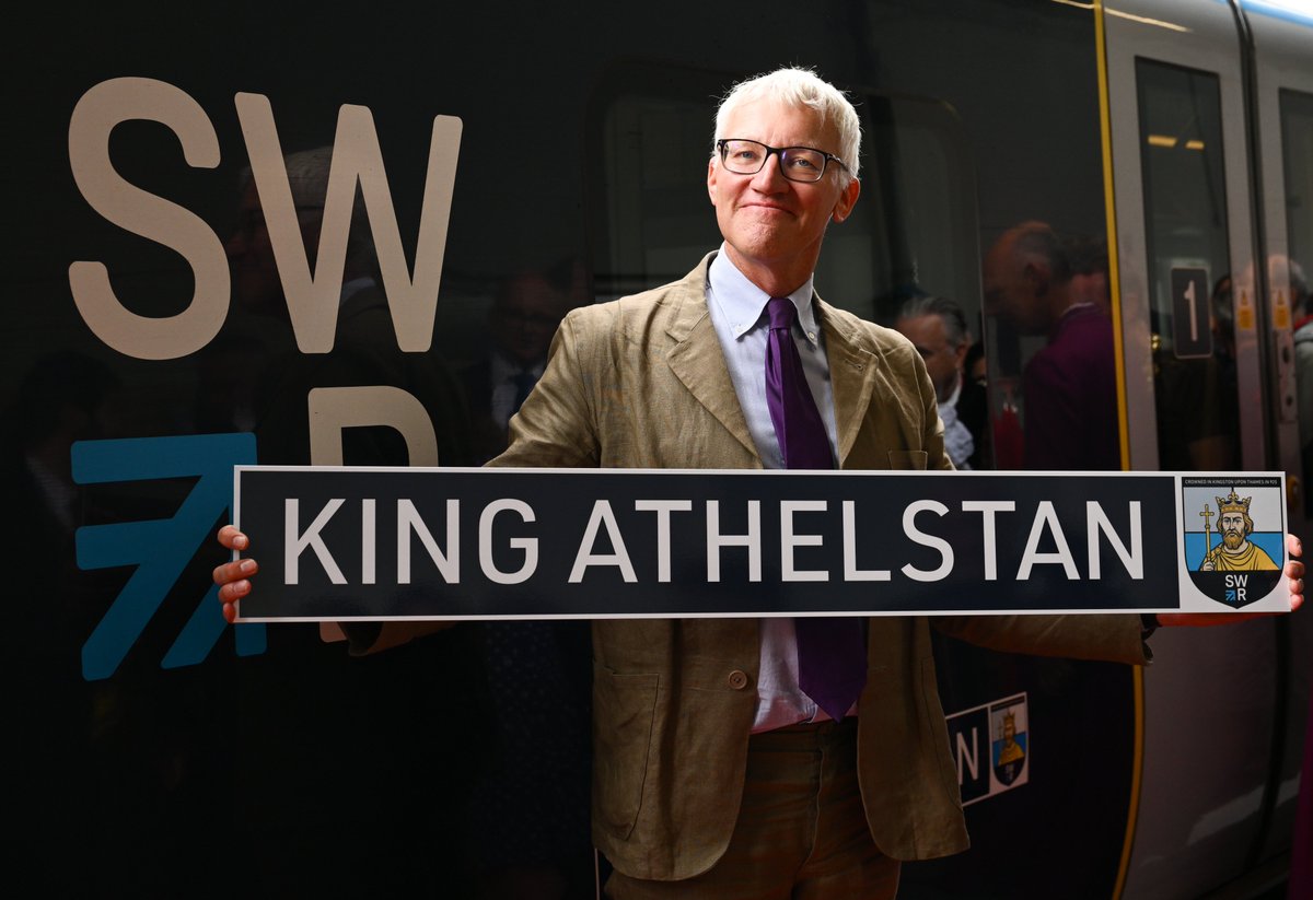 This morning SWR named a Class 450 train King Athelstan (not Æthelstan because presumably that was deemed too complex). The ceremony at Kingston station involved the historian Tom Holland, the local MP Sir Ed Davey and a group of Saxon reenactors from the Wychwood Warriors. Children from King Athelstan Primary School were also present, wearing cardboard crowns prominently featuring the SWR logo, which is a pretty good way to skive off lessons on only the third day of the new school year. Obviously there were iced cupcakes with an edible picture of the king on top because that's what Æthelstan would have wanted. Ian has all the photos of the event so do go and read that, especially if you prefer railways to history, and to be impressed by how a train company managed to hijack the anniversary and make it all about them on a site that wasn't where the coronation took place either.